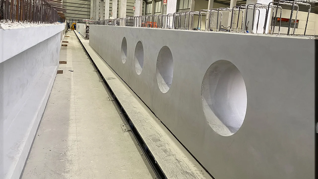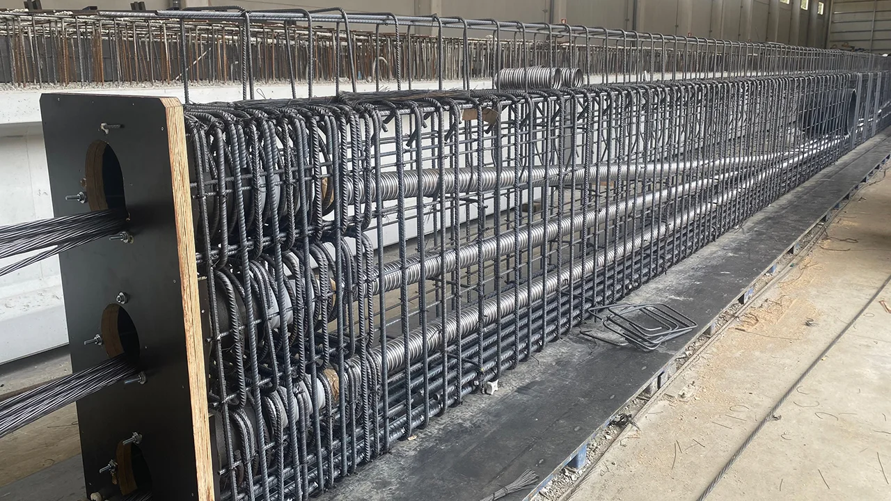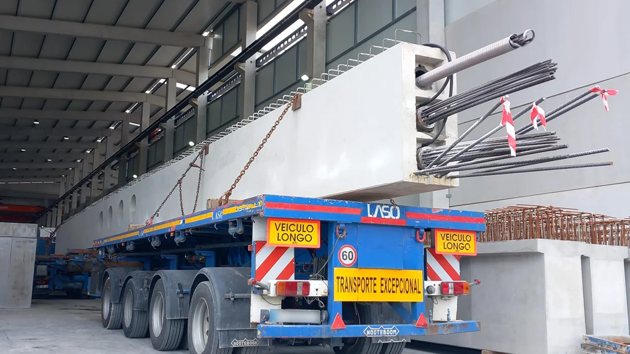 Supply and transport of post-tensioned beams, installed with the support of a 400-tonne crawler crane. The cables were tensioned in two stages, the first at the factory and the second on site, ensuring the strength and stability of the structure.