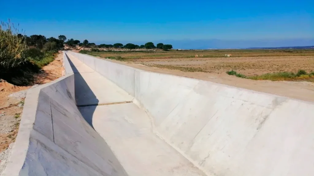 Fourniture et mise en place de 50 000 m3 de béton prêt à l'emploi pour la rénovation du canal de la Comporta, qui sert à l'irrigation agricole de la vallée du Sado.