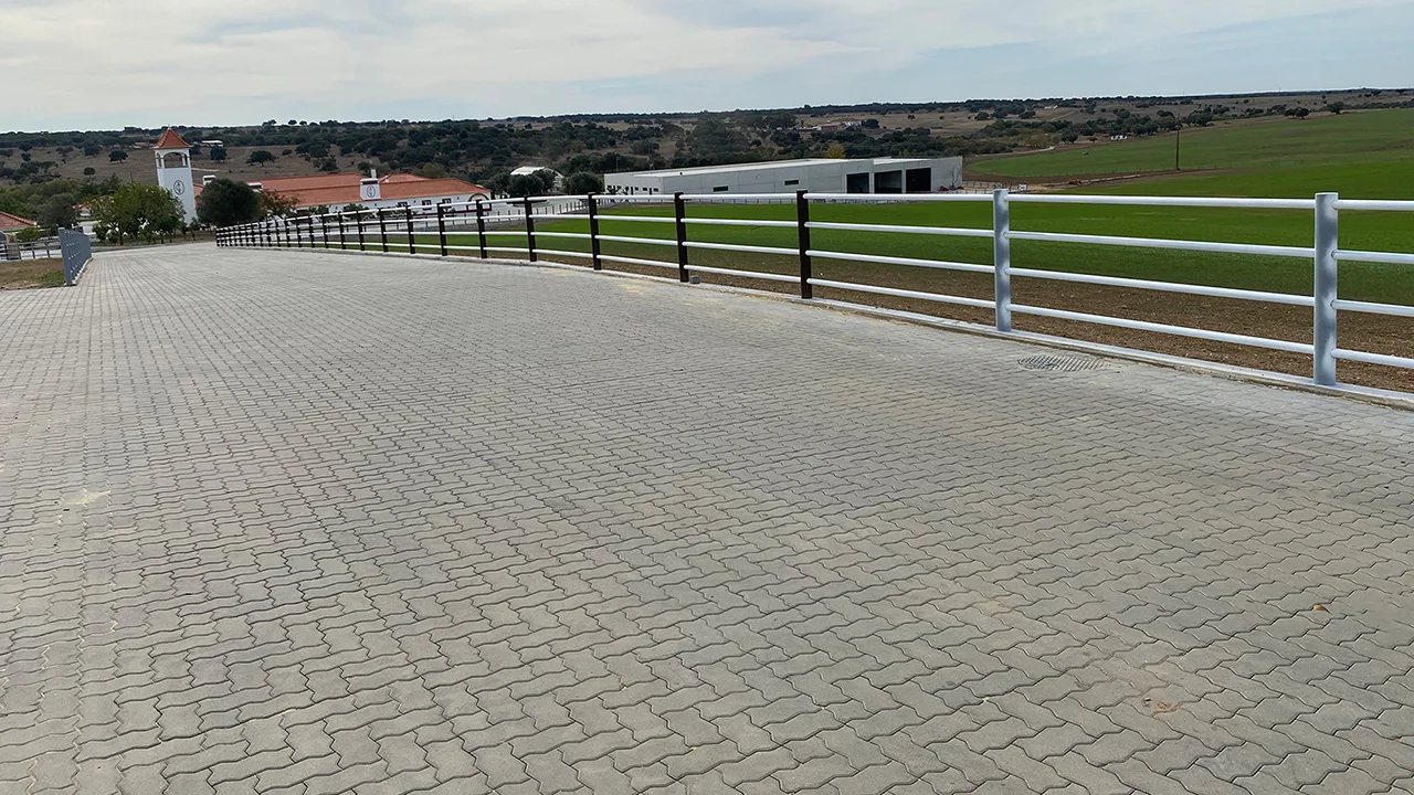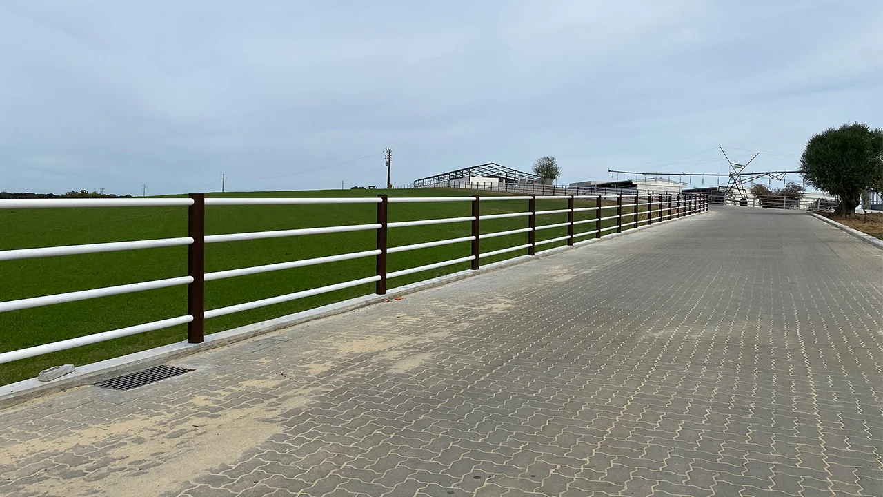Cette intervention comprenait la construction de la route d'accès au domaine, la fourniture de 25 000 m² de revêtement et la production de 10 000 m² de hangars industriels et agricoles.