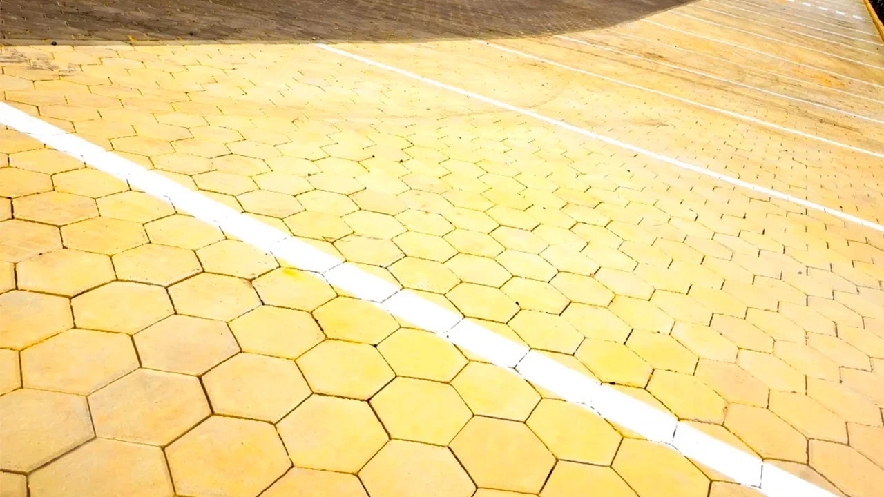 A aplicação de pavimento hexágono numa residência sénior na Guia, no Algarve, resultou numa solução duradoura e visualmente apelativa.
